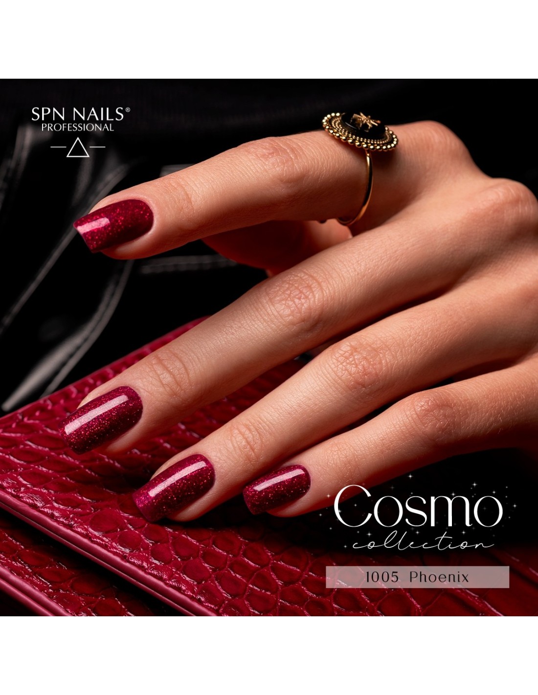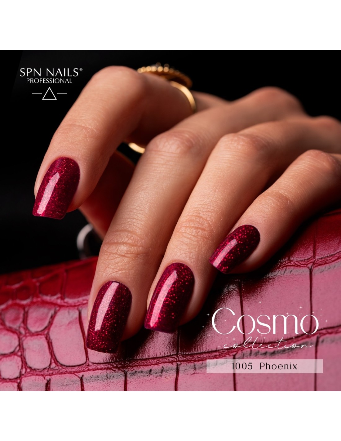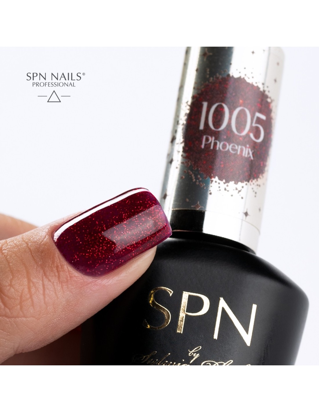 1005 Phoenix UV LaQ 8ml - red gel nail polish with glitter from the Cosmo SPN Nails collection