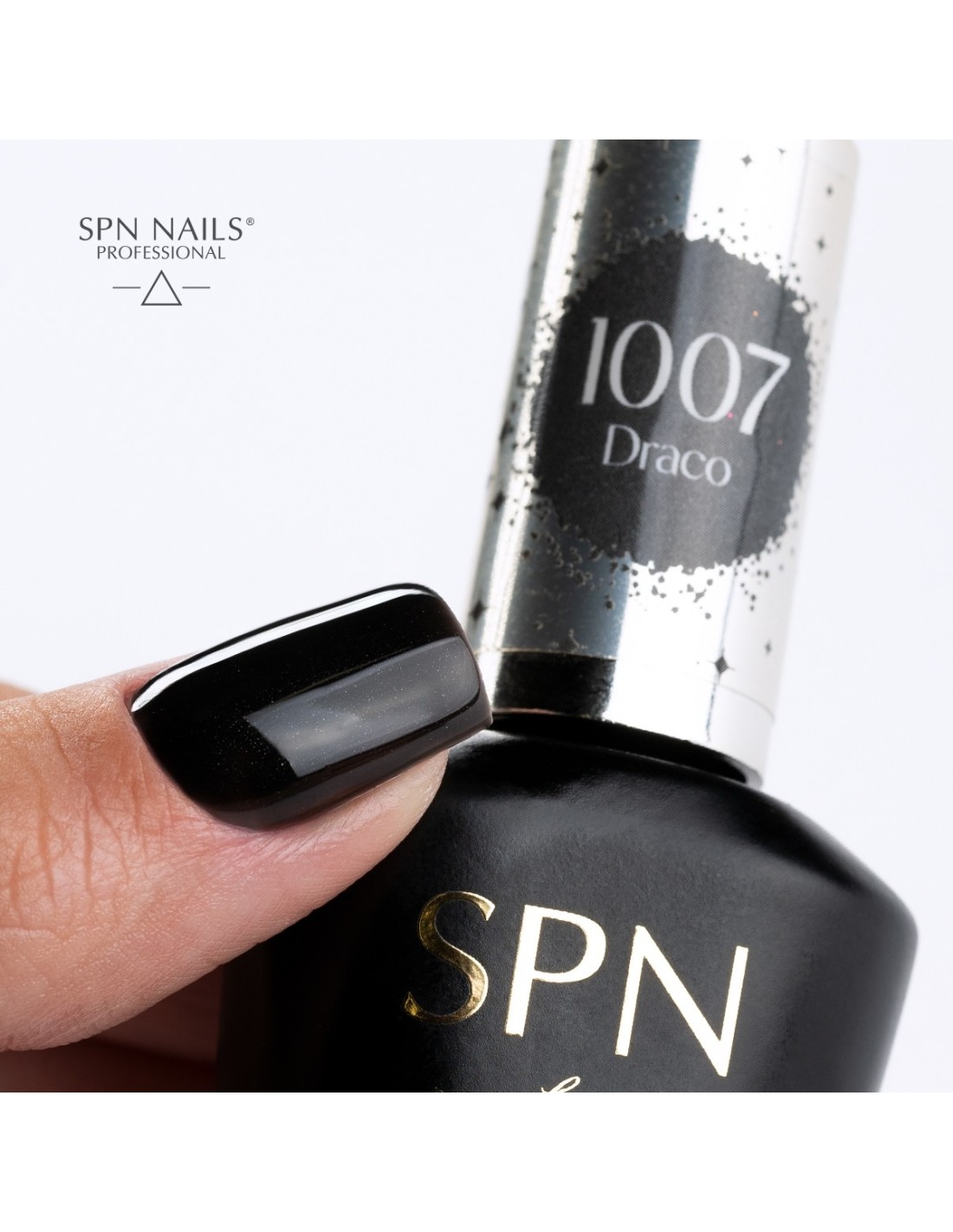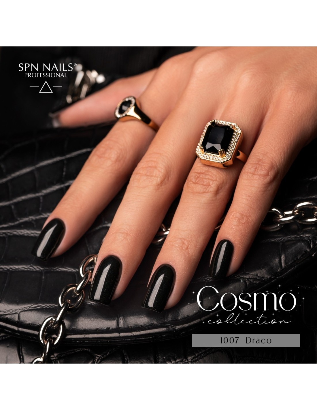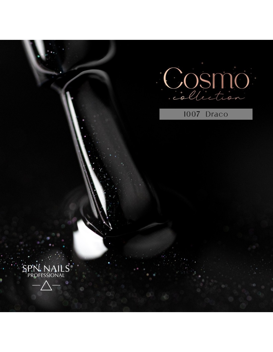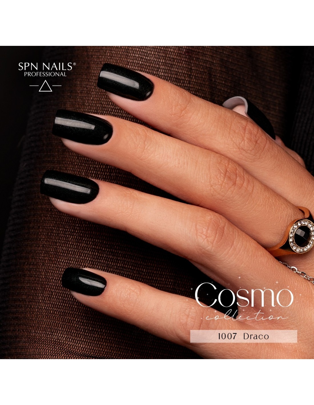 1007 Draco UV LaQ 8ml - black gel nail polish with delicate glitter from the Cosmo SPN Nails collection
