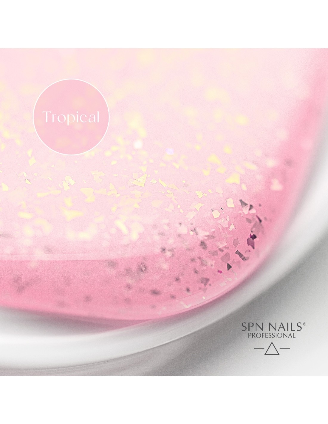 Tropical Builder Shine Gel will enable you to create extremely durable and stunning nail designs for your clients, without the need to use many products. Thanks to its thick consistency, self-leveling formula, and evenly distributed particles, working with this gel will be even more delightful.