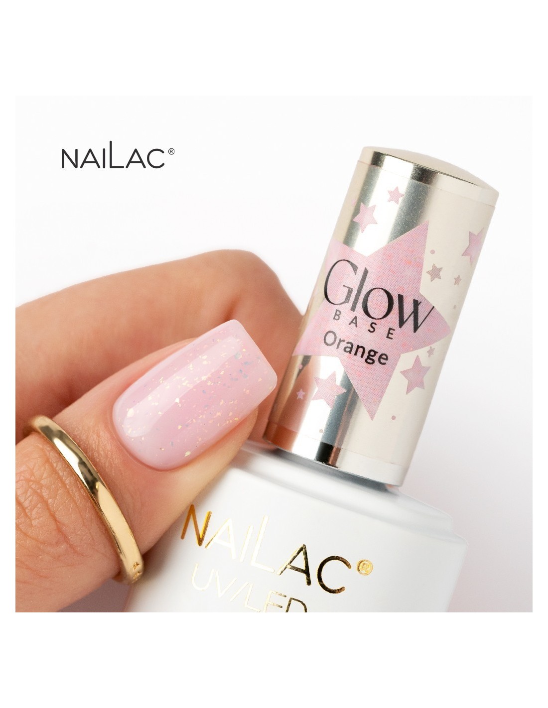 Glow Base Orange is a gently peachy rubber base with shimmering particles of various sizes. With it, you can create truly fashionable and energetic #mani in the blink of an eye - just apply it to the nail plate, cover it with a top coat, and you're done! The eye-catching particles shimmer with orange hues that will surprise you with their variety from every angle. They will be the perfect companion for parties until dawn, perfectly complementing grungy looks and jewelry-adorned styles.