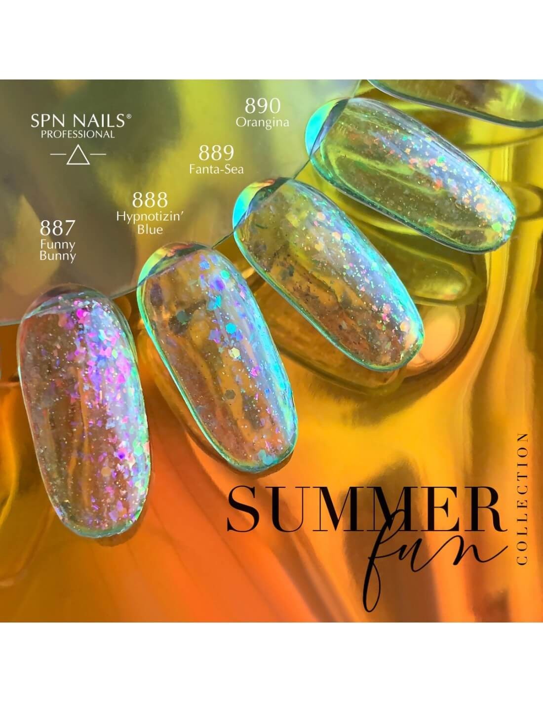 Fanta-Sea is a transparent gel polish with shimmering glitter in green reflects.