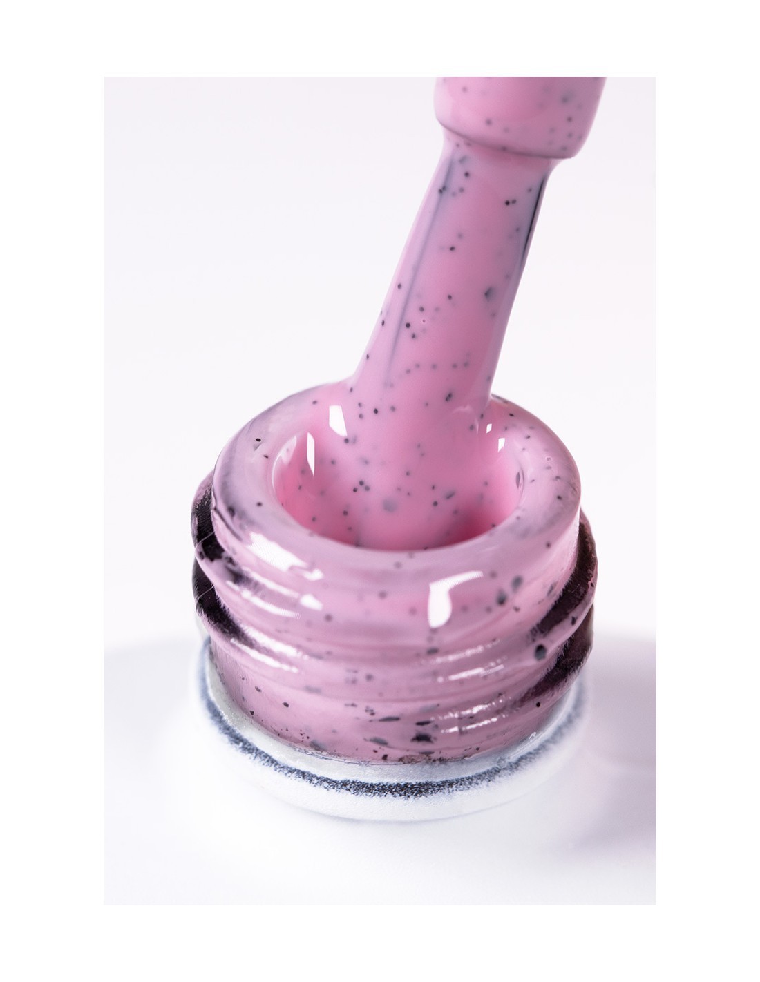 a pink with black particles