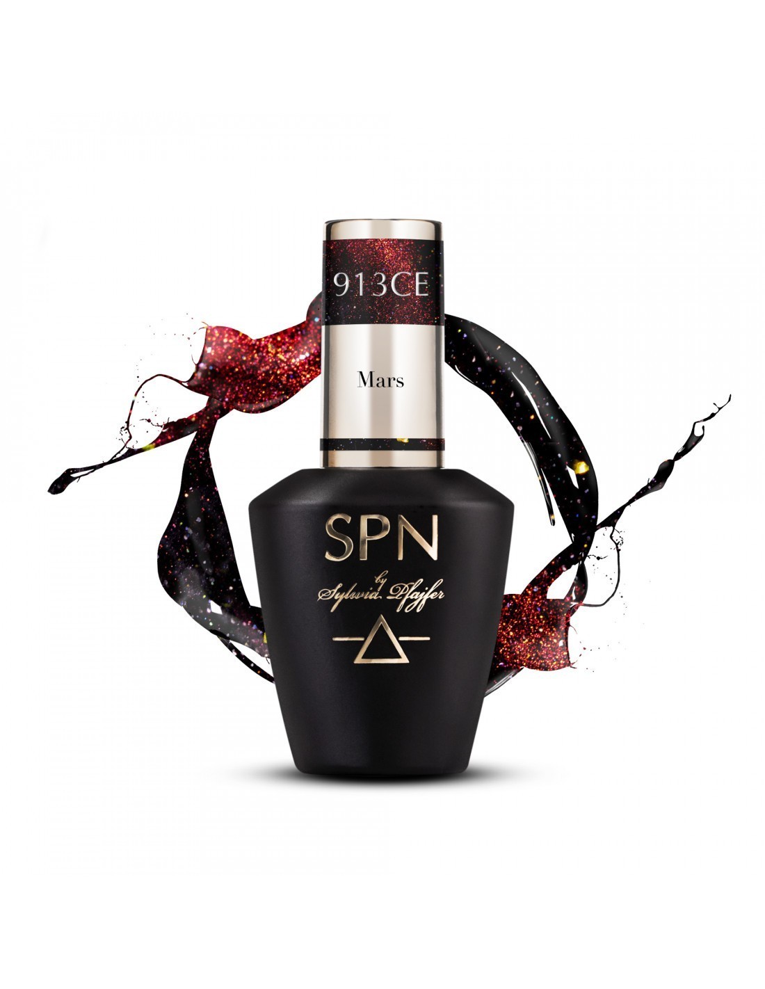 913CE Mars is a gel polish with a Cat Eye effect that gives a cosmic red glow, with the addition of colourful particles.