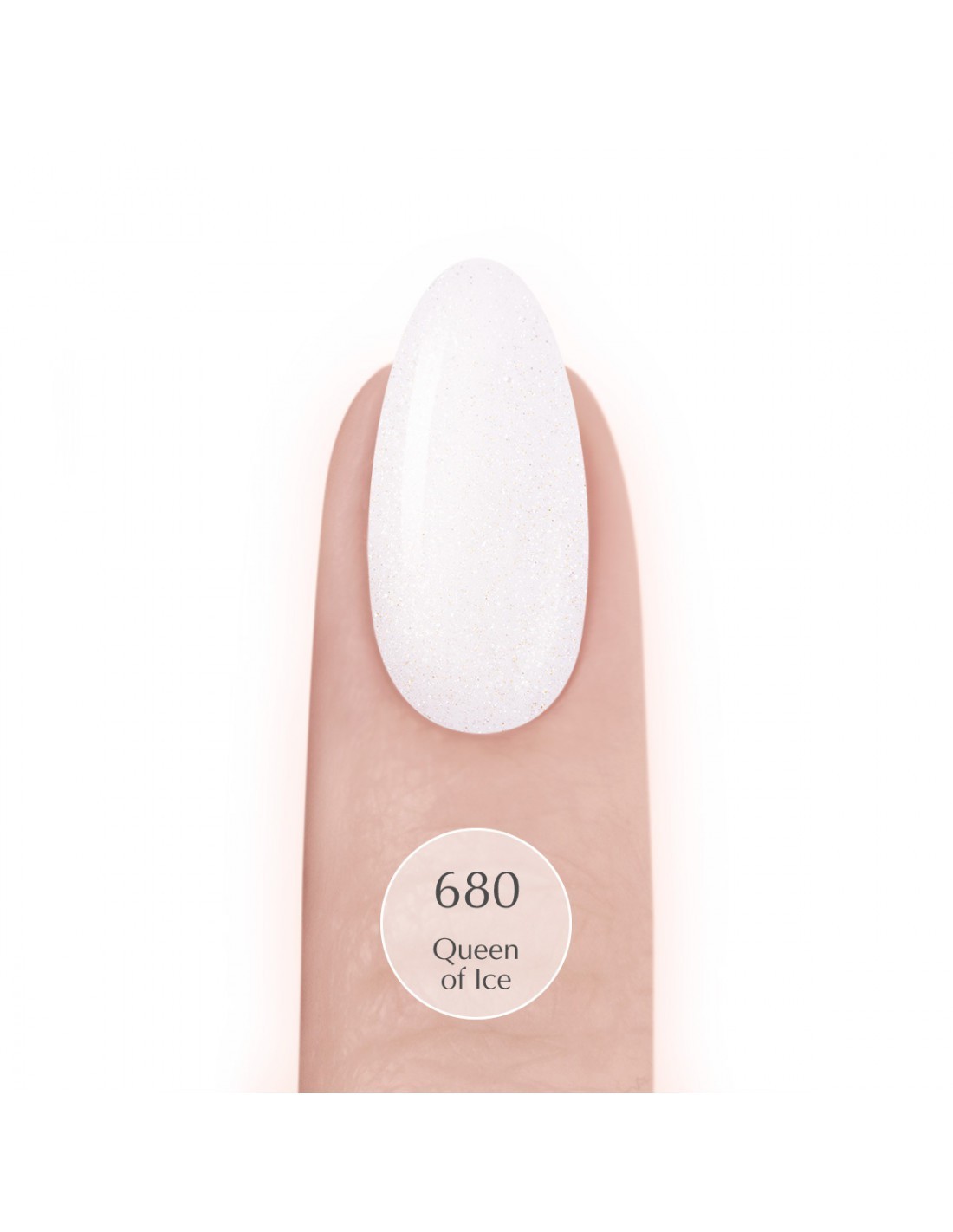 680 Queen of Ice is a shade for a real ice queen, a fan of milky white, semi-transparent nails with a shimmering particles. Like a sparkling snow underfoot. It will look beautiful both solo and with the addition of Swarovski crystals.