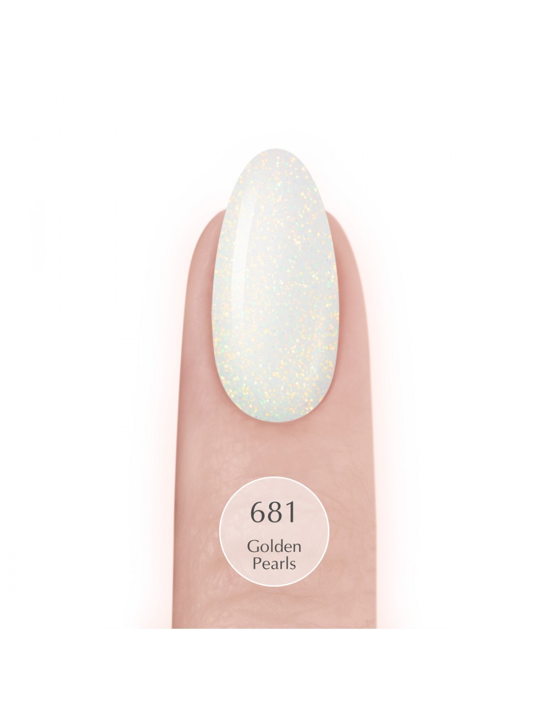 681 Golden Pearls is a cool shade of precious pearls with a holographic particles. A semi-transparent, gold and orange mist that shines in the winter sun like LED lights on shop windows.