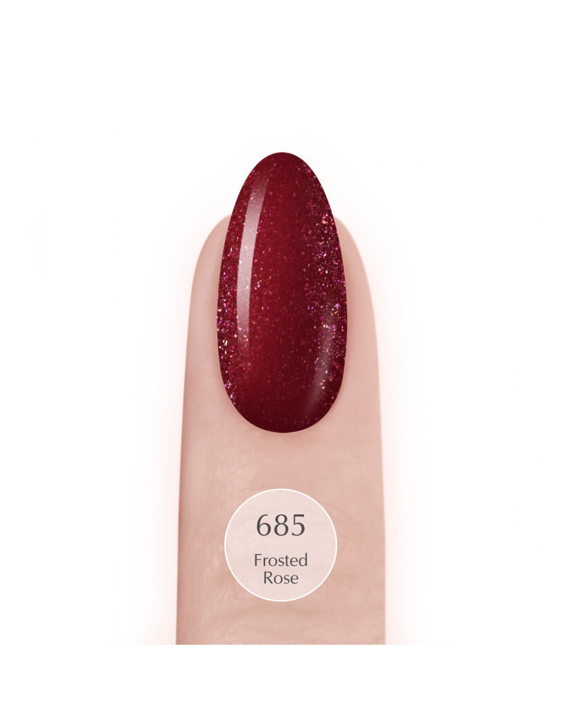 685 Frosted Rose is a beautiful combination of pink and red, where shiny particles stand out in the foreground. It brings to mind a delicate, frosted rose flower. A must have for every fan of the classics!