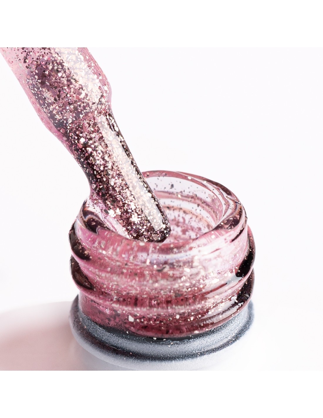 subtle specks in a silver hue embedded in a gently pink mist of hybrid nail polish.